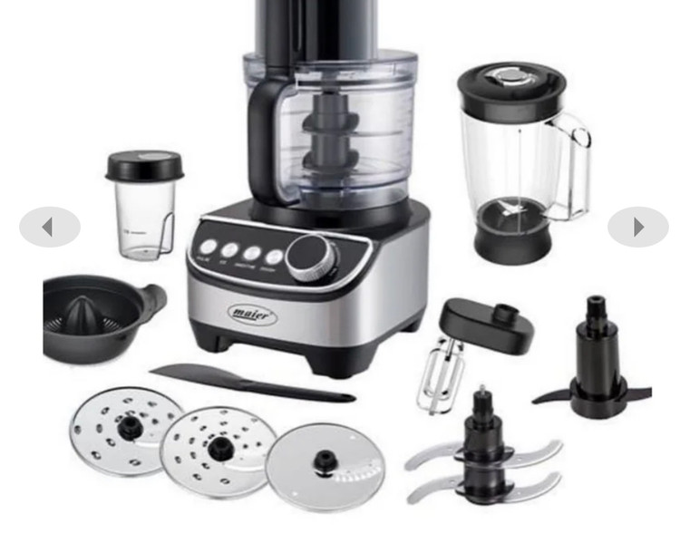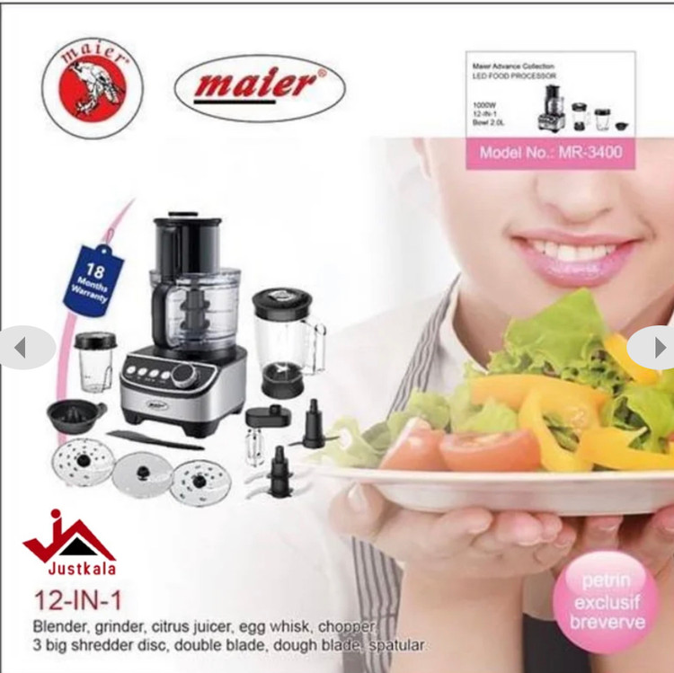 غذاساز 12 کاره مایر مدل Maier MR-3400 محصولی بسیار کم نظیر و قدرمند از برند مایر است که در آن موتوری با توان 1000 وات تعبیه شده است تا به راحتی هر آن چه که میخواهید را برایتان فراهم کند. این محصول فوقالعاده خیالت شما را بابت داشتن مخلوطکن، آسیاب، آبمیوه گیری، سالادساز، خردکن، صفحههت خردکن سبزیجات و سیفیجات، همزن تخم مرغ، خمیرزن و همچنین غذاسازی بسیار باکیفیت آسوده مینماید. غذاساز مایر MR-3400 با استفاده از تیغههای استیل تیز و بسیار مقاوم خود به راحتی از پس خورد کردن و نرم کردن هر نوع موادی بر میآید و بافتی یکدست را تحویل میدهد. نکته جالب درباره تیغ این محصول این است که هیچگاه کند نمیشود. دربدنه این محصول از استیل و پلاستیک بسیار باکیفیتی استفاده شده است و طراحی بسیار زیبا و شکیل این محصول آن را به انتخابی مناسب برای همگان تبدیل میکند.