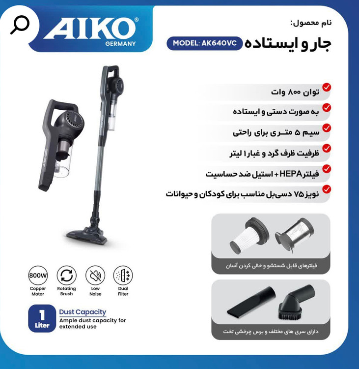 جارو برقی ایستاده عصایی ایکو‌ AK640vcساخت المان قدرت (۸۰۰ وات (حمل رایگان)