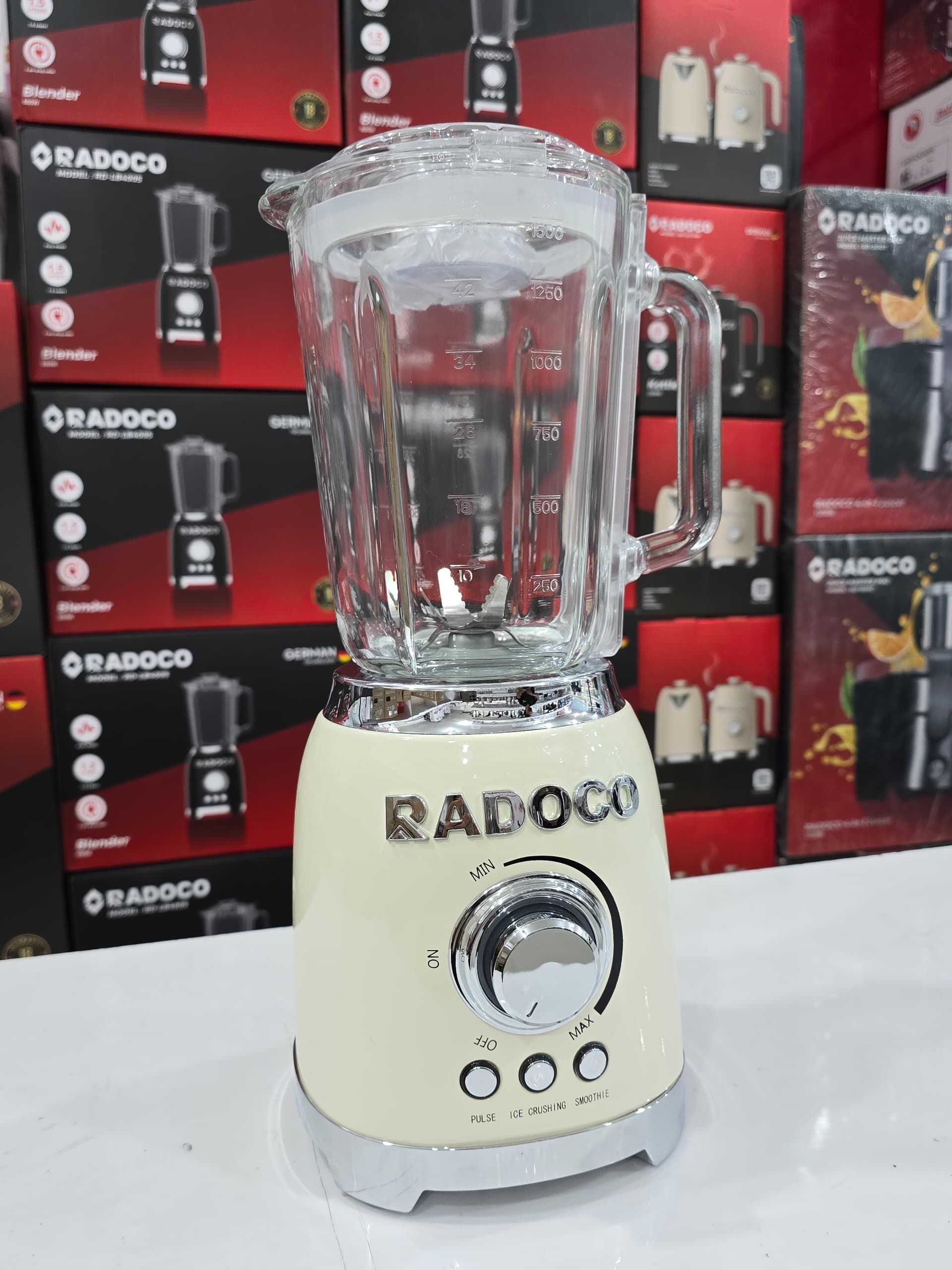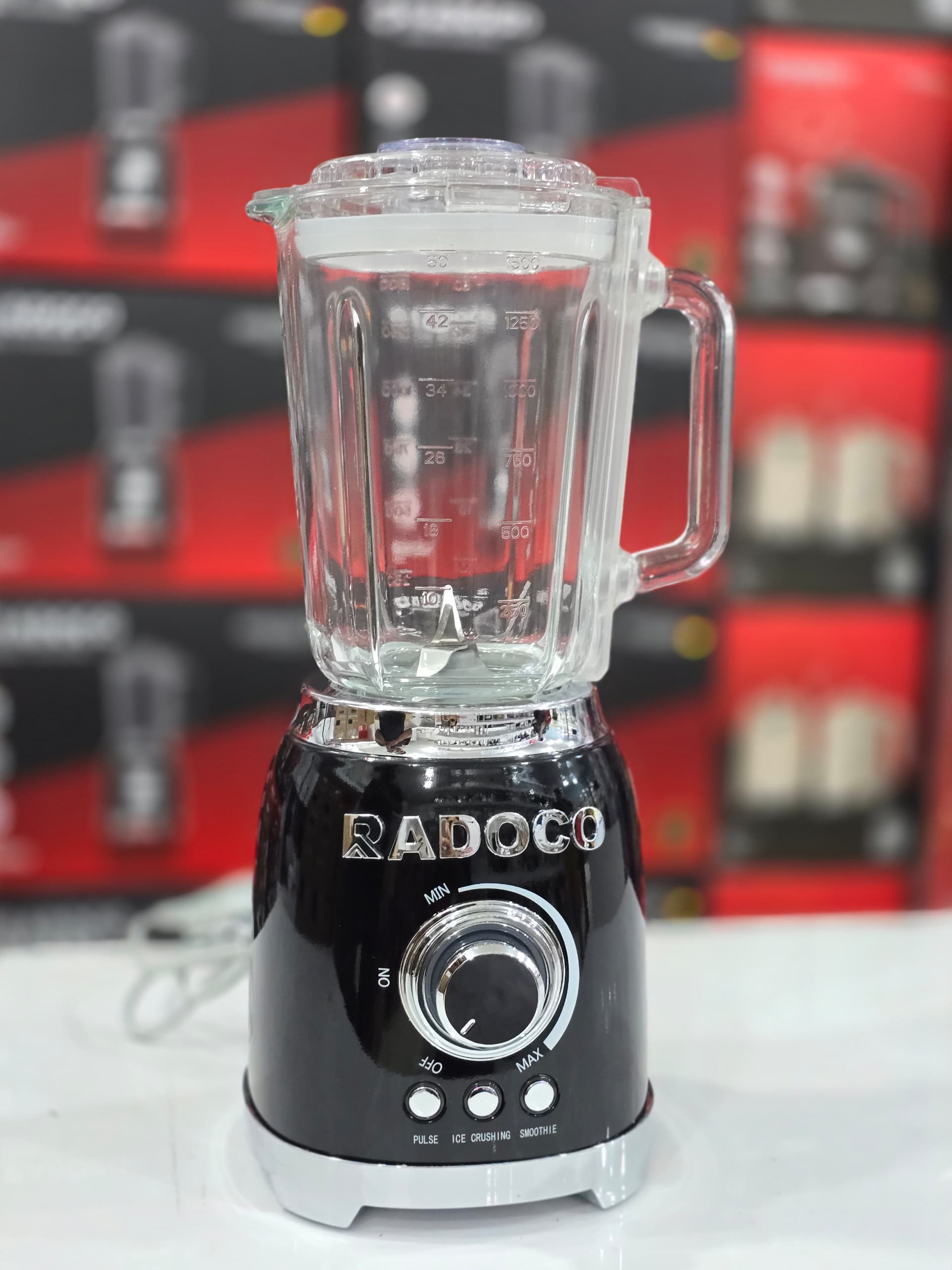 مخلوط کن رادوکو جدید ۶۰۰ وات پارچ شیشه ایی ۱/۵ لیتری دارای عملکرد پالس خردکن یخ. و اسموتی ساز در دو رنگ