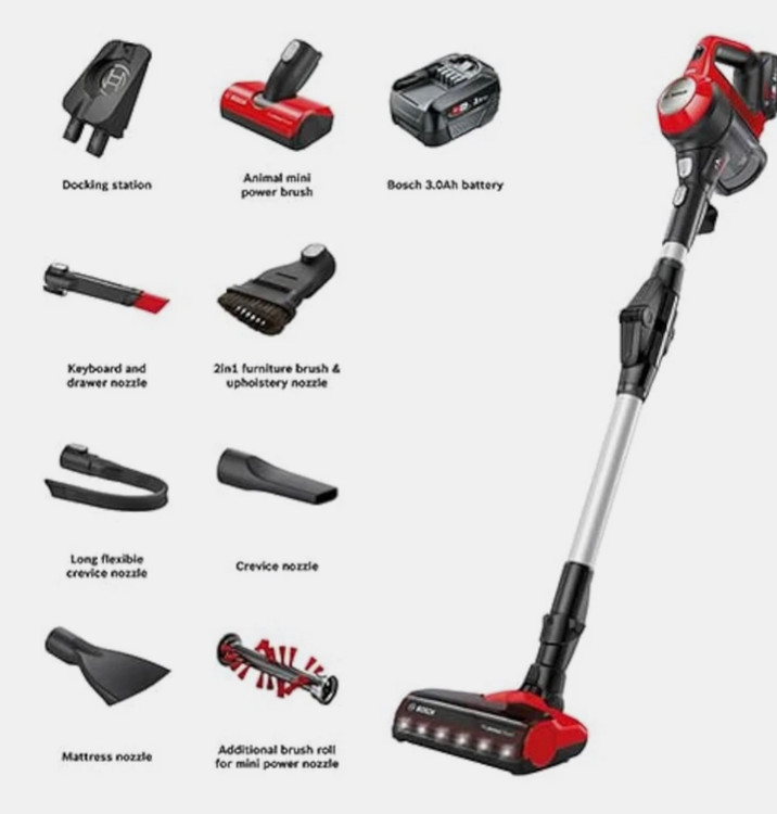 ۱ عدد باتری قابل جایگزین, ۱ عدد برس اضافه برای برس مینی پاور, آداپتور شارژر, برس مختص نظافت مبلمان و سایر لوازم داخلی ساختمان, برس مینی پاور مختص جمع آوری موهای حیوانات خانگی, داکت قابل اتصال به دیوار برای نگهداری راحت دستگاه و لوازم جانبی, شلنگ انعطاف پذیر, نازل بلند انعطاف پذیر برای دسترسی به مکان های سخت (نازل شکاف), نازل مخصوص نظافت تشک