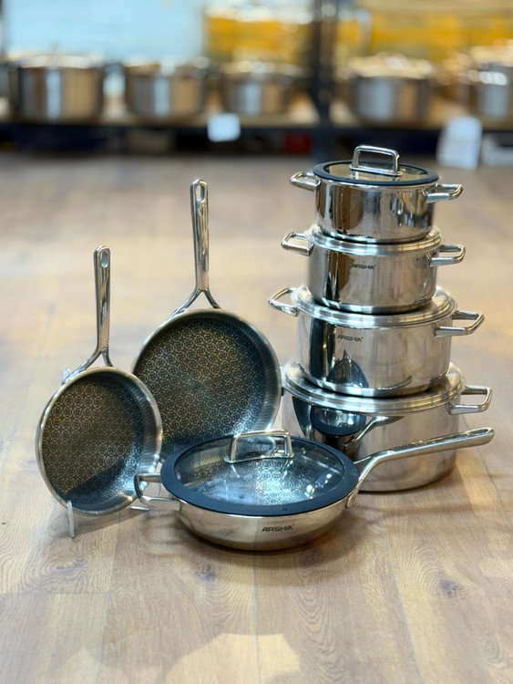 سرویس ۱۲ تکه قابلمه استیل کف لیزری عرشیا (حمل رایگان )