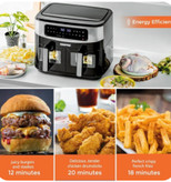 - دارای ۲ محفظه جهت پخت مجزا, - دارای دو محفظه 4.5 لیتری, - جنس محفظه تفلون نچسب باکیفیت, - جنس بدنه پلاستیک, - قابلیت تنظیم دما تا ۲۰۰ درجه سانتی گراد, - پخت به کمک سیستم گردش هوای سریع, - مصرف روغن تا 99% کمتر, - سیستم ایمنی در برابر حرارت بالا, - زمان پخت تا ۶۰ دقیقه, - نمایشگر لمسی, - دارای 10 برنامه پخت ویژه, - قابلیت DUAL COOK