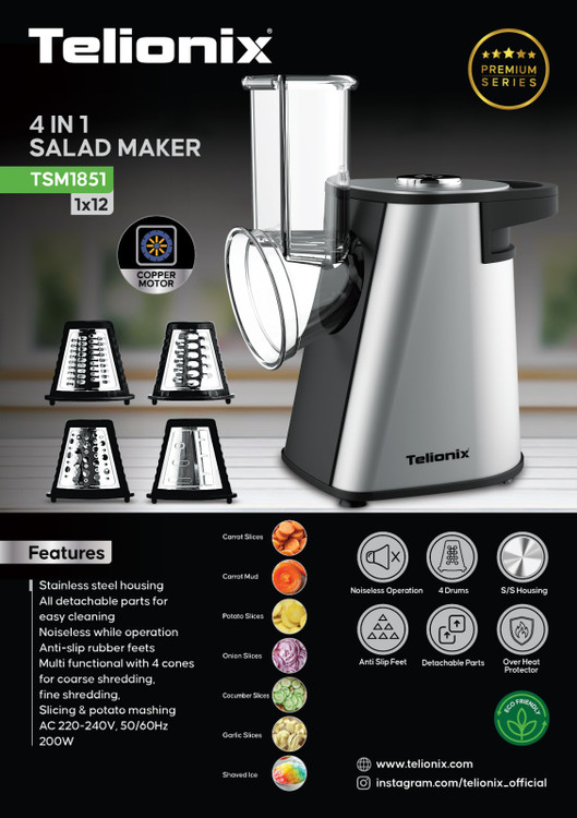 رنده برقی و سالاد ساز تلیونیکس ۴ کاره مدل TSM1851(حمل رایگان )