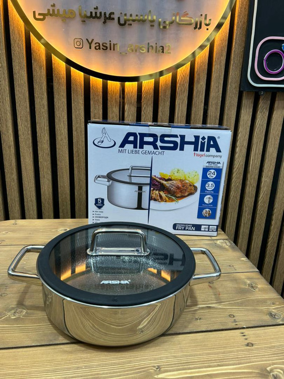 ماهی تابه دو دسته عرشیا مدل ss050_3340 سایز۲۴ سانتی متری کف لیزری