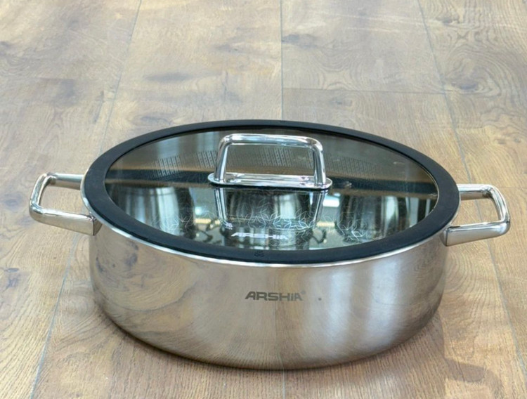 ماهی تابه دو دسته استیل کف لیزری ۳۰سانتی عرشیا مدل ss050-3342
