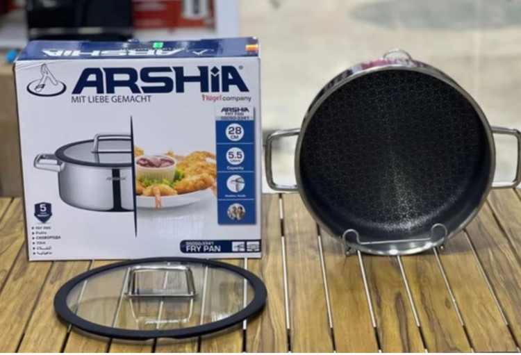 ماهیتابه دو دسته عرشیا مدل ss050_3341سایز ۲۸ سانتی استیل کف لیزری