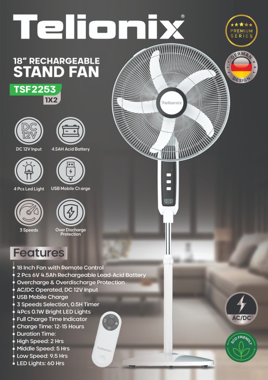 پنکه شارژی تلیونیکس مدل TSF2253(ارسال رایگان )