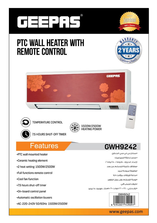 بخاری برقی جیپاس مدل GWH9242 با فن و قابلیت خاموشی خودکار(ارسال رایگان