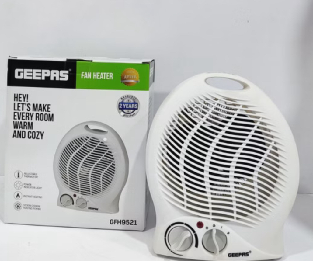 مشخصات کلی برند Geepas ساخت چین سفارش امارات متحده عربی نوع برقی مدل GFH9521 توان 1000/2000 وات طول کابل 1 متر جنس بدنه ABS رنگ سفید قطع کننده خودکار دارد دفترچه راهنما دارد