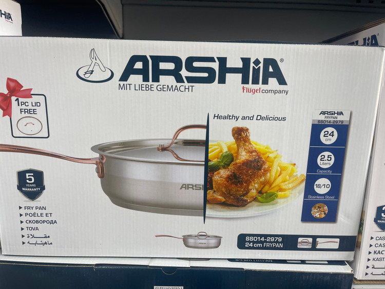 ماهی تابه عرشیا دسته مسی مدل SS014_2979سایز ۲۴ با دو درب استیل و دسته مسی(ارسال رایگان)