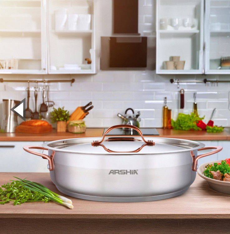 ماهیتابه دو دسته ۳۰ سانت استیل دسته رزگلد و مسی عرشیا مدل SS014_3312(ارسال رایگان )