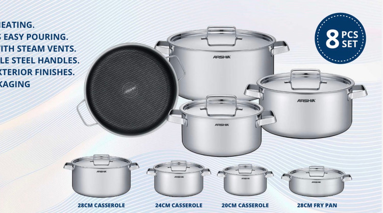 ‌سرویس قابلمه استیل عرشیا لیزری ۸ پارچه مدل SS272-3714(( ارسال رایگان