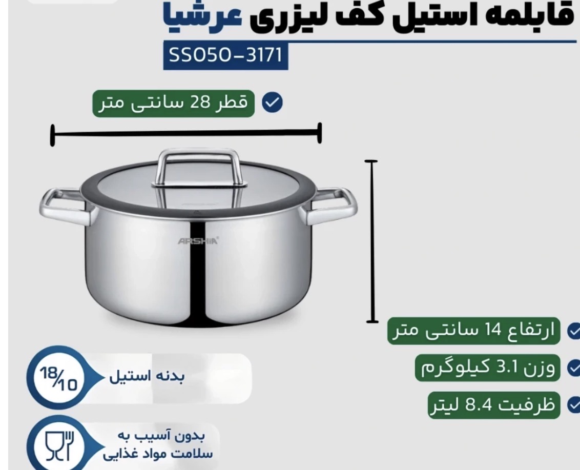 قابلمه استیل عرشیا کف لیزری عرشیا ۲۸ سانت مدا SS050_3171