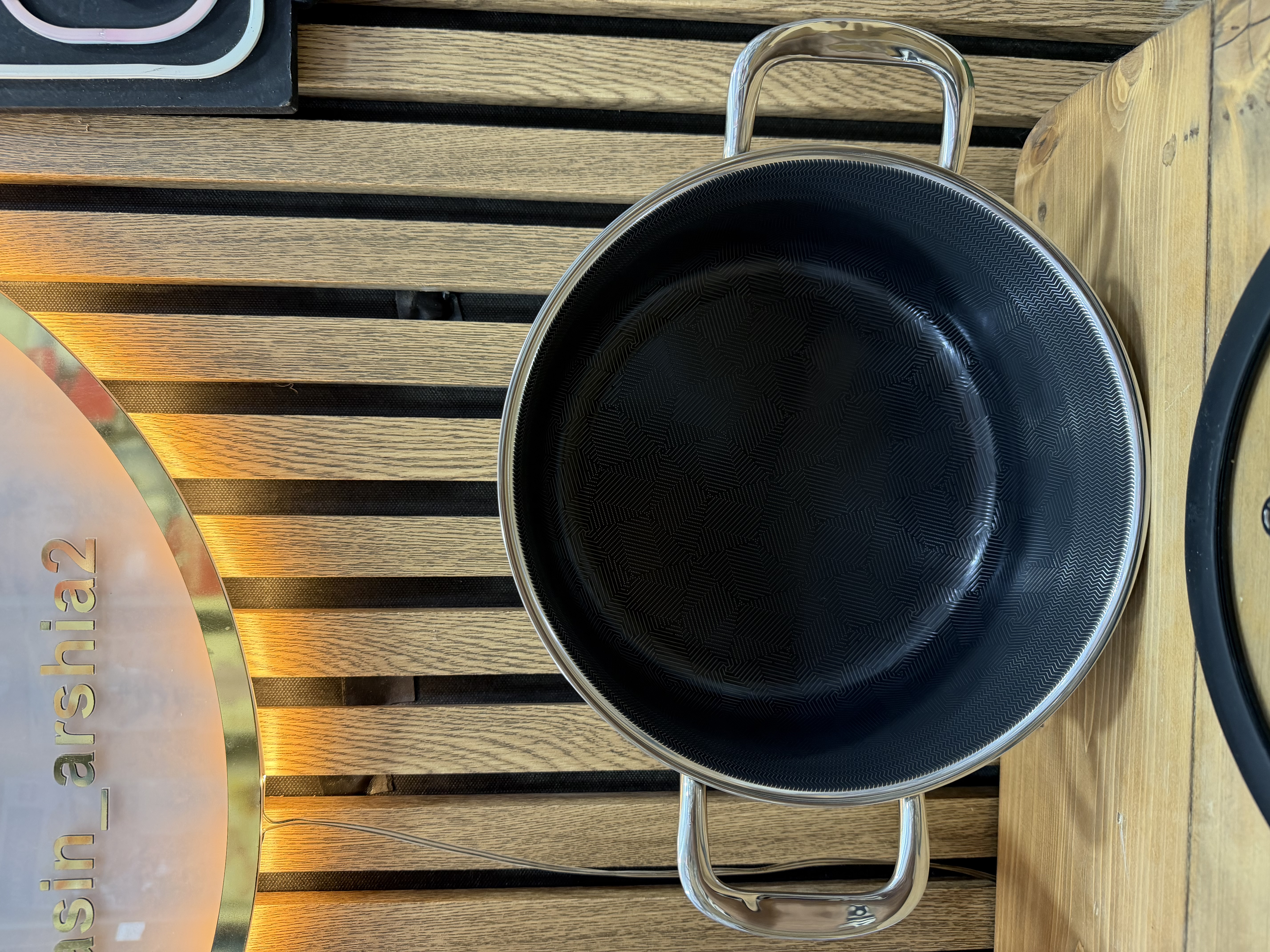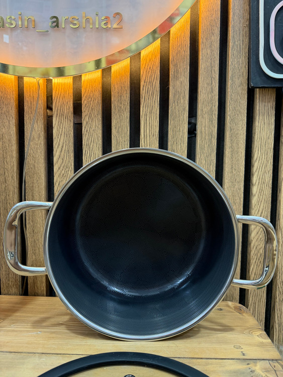 ساختار ۳ لایه برای توزیع یکنواخت حرارت. ،سازگار با انواع اجاق ها از جمله القایی. دارای دسته های مقاوم به حرارت