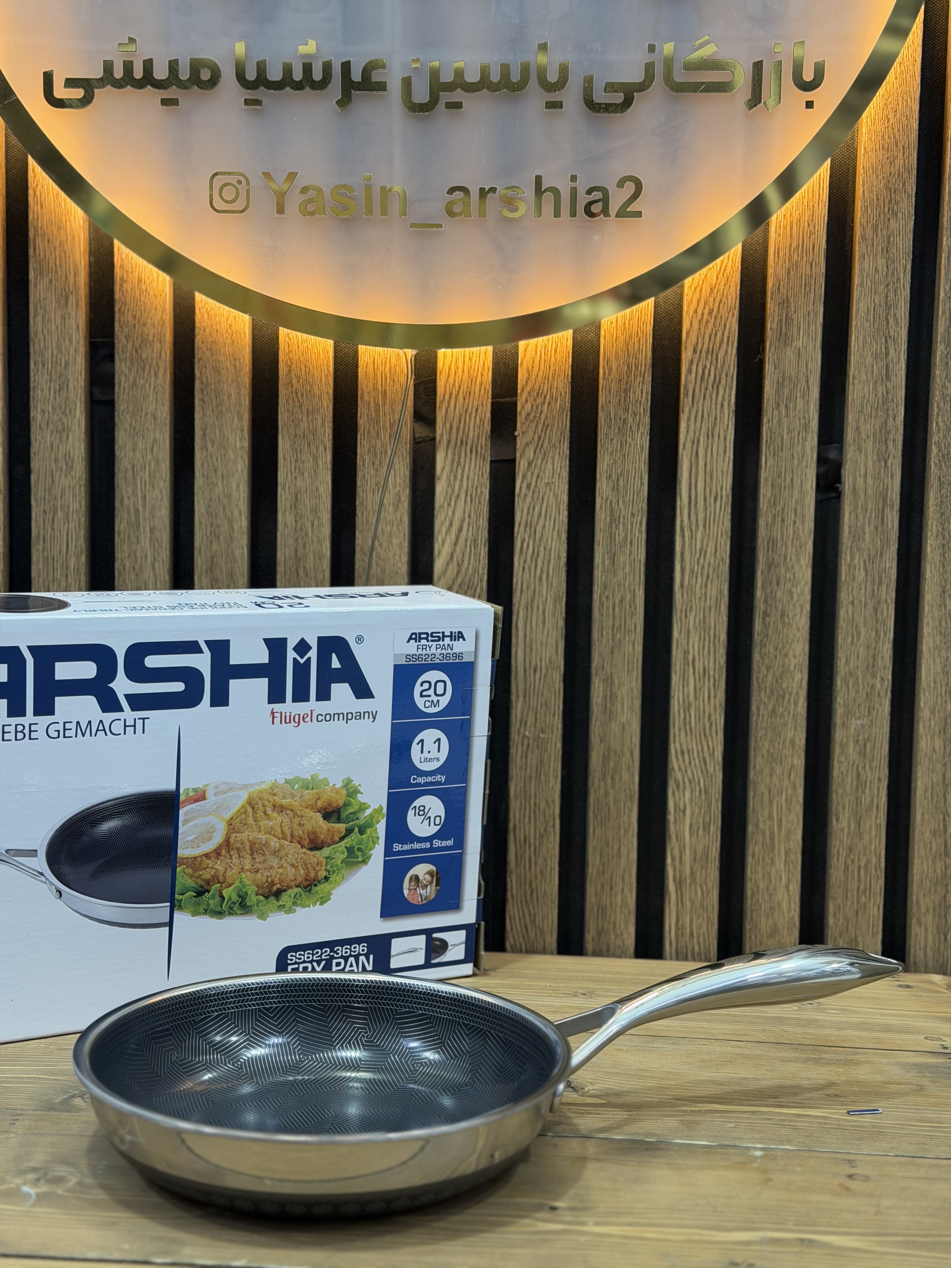 ماهی تابه دسته دار ۲۰ سانت استیل لیزری هیبرید عرشیا SS622-3696)ارسال رایگان )
